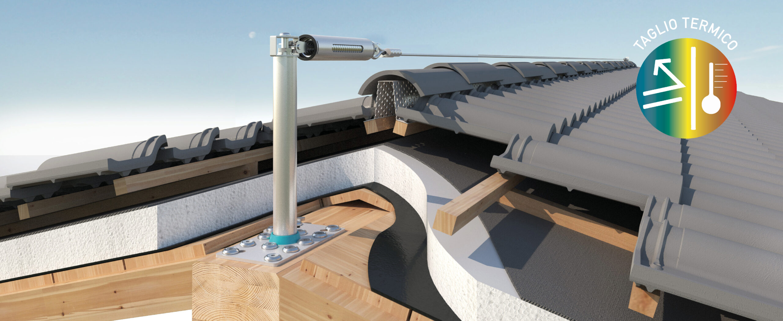 E questa ricerca l’abbiamo presa come sfida e ci siamo immersi nella progettazione consapevoli che l’eccellenza sta nei dettagli ed i dettagli fanno la differenza! Preso atto del fatto che l’installazione di dispositivi anticaduta (linee vita, ancoraggi, ecc.) causa un problema di ponte termico in quanto per essere fissati alla copertura necessitano di fori, abbiamo deciso di progettare un sistema capace di eliminare il problema.