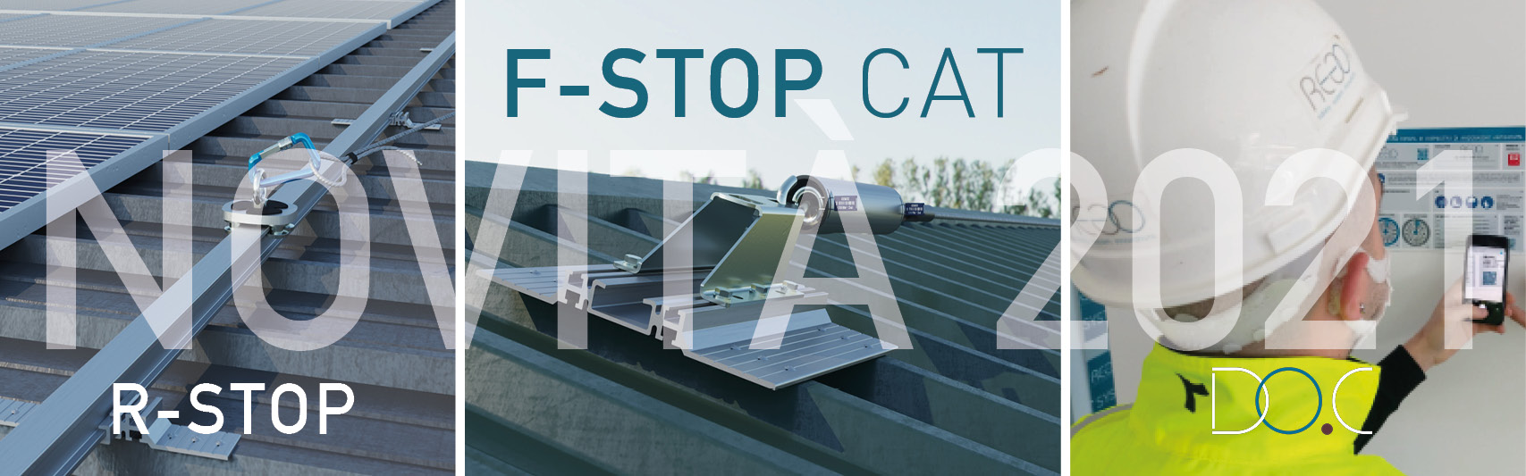 - F-STOP CAT, un dispositivo anticaduta Tipo C per manti di copertura metallici, che rinnova totalmente il nostro F-Stop;